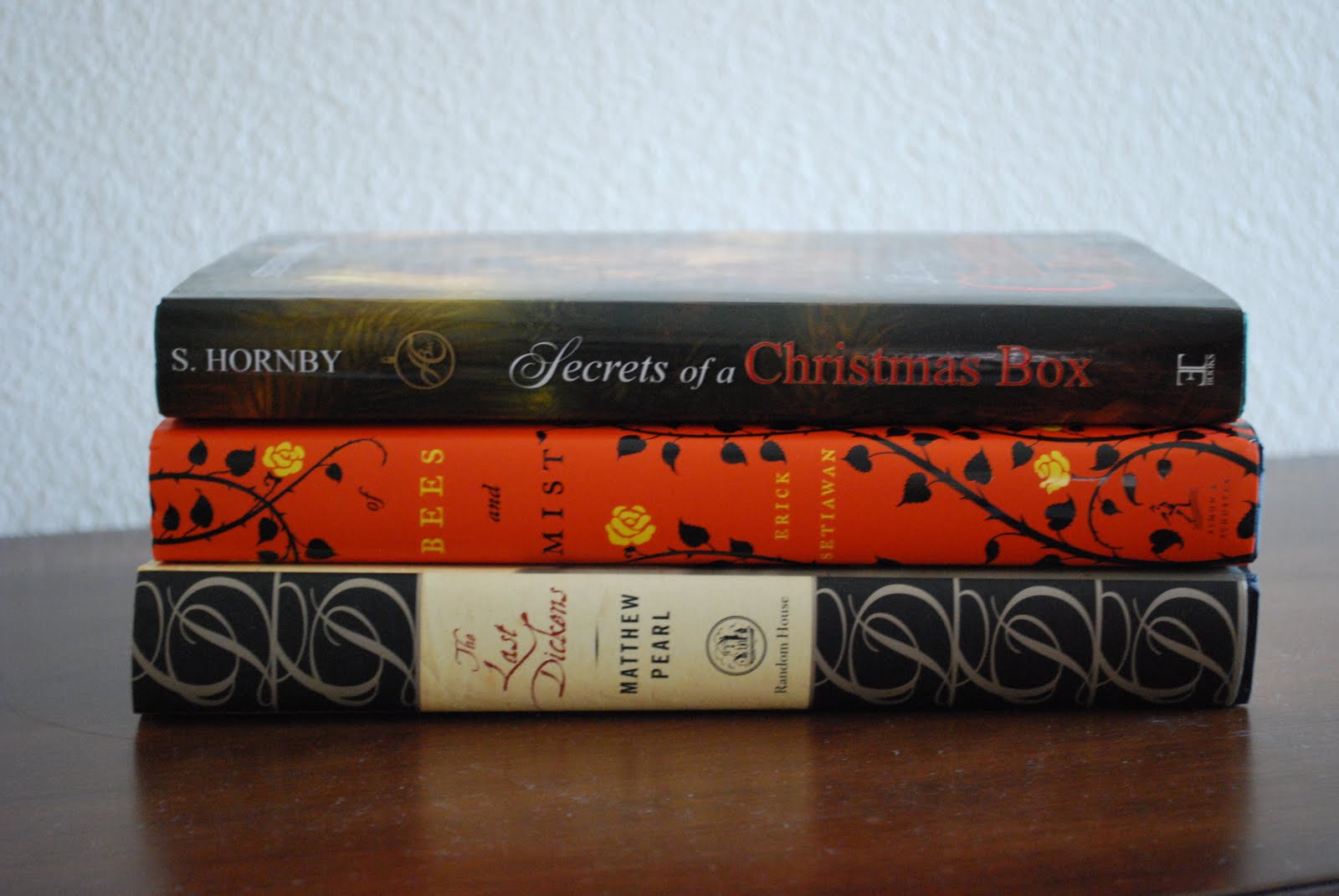 You have some great books there this week: Of Bees and Mist and the Christmas one appeal to me. Also, the Sarah Waters book sounds great to. I just started following you blog–it's great. Not sure how I missed it this long??