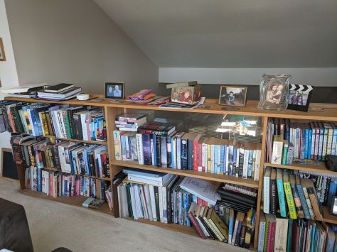 My shelves. I tidied up but then my daughter came in and took over the loft. This loft is never going to be mine. I need to go through those books. I am good about keeping it pretty lean but there are some that I just know I will not read now after COVID. My patience and mood are pushing me towards certain books and have me running from others. Probably about 15% of what’s in the loft can go now. It’s a project and that keeps my mind off of this crazy world so it’s a good thing.